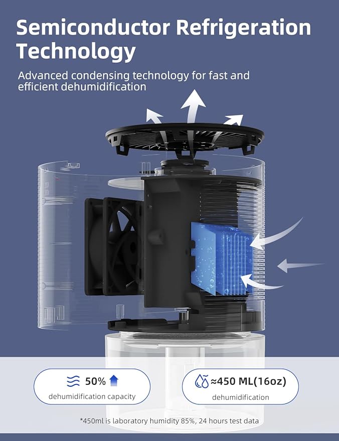 - Ultra-Quiet, Sleep-Friendly: many conventional dehumidifiers operate with high noise levels, making it hard to fall asleep, while this small dehumidifiers with advanced Peltier tech reduce the operating sound to less than 35db without compromising dehumidification efficiency, creating an ideal sleep environment. It's important to choose efficient but quiet dehumidifiers for bedroom