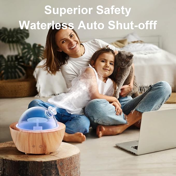 - 【Non toxic and high-quality】Harmless to pets and plants, The diffuser is made of BPA-free plastic, and the artisan handcrafted glass cover so you can see the smoke wafting inside. A beautiful and modern imitation wood grain base complements any room. Designed according to the principles of fluid dynamics, it can operate below 30dB without affecting your sleep or work.The aromatherapy diffuser makes a great and valuable gift for your friends and family.