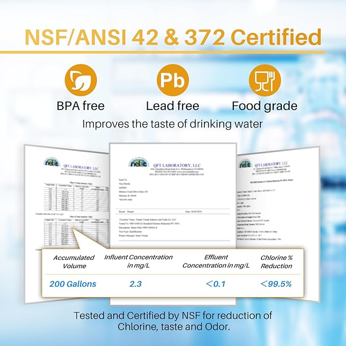 - Premium Materials- food-grade and BPA-free materials. This filter is made from advanced natural coconut shell carbon and is Certified by Authoritative organizations. The Outer layer is 0.5 Micron, ensuring better filtration. The carbon blocks have been independently tested by a third-party laboratory to remove heavy metals, large sediments, and other impurities and contaminants