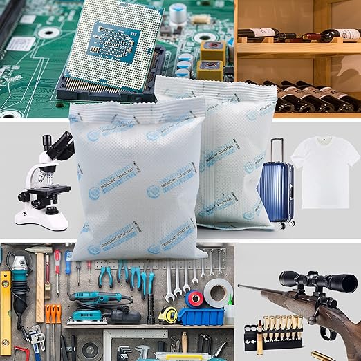 - 【Widely Used】: The silica gel desiccant packets provide a better solution keep moisture from guns, important papers, legal papers, collectibles, books, jewelry, photo album, shoes, camera lens, toys, leather clothing, ammo. photo equipment,etc. This type of desiccant is also widely used in mental processing, machine manufacturing, electric manufacturing & clothing industries for moisture prevent and proper storage.