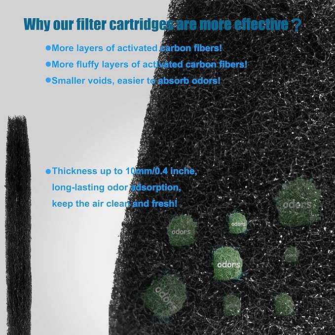 - 12 Pack – Each filter provides up to 2 months of odor-absorbing power.