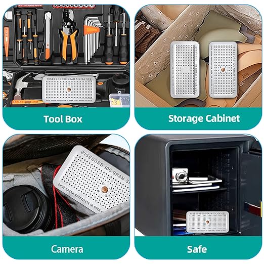 - 【Great Absorbing Capacity and Multi-Purpose】: Silica gel can protect up to 120 cubic inch each One grams of any enclosed / sealed storage space such as safe, ammo cans, ammo boxes, tool box, 3d printer filament sealed plastic storage box, weapon case, closet and provide a better solution keep moisture from guns, important papers, legal papers, collectibles, books, jewelry, photo album, shoes, camera lens, expensive camera equipment, toys, leather clothing, ammo, photo equipment.