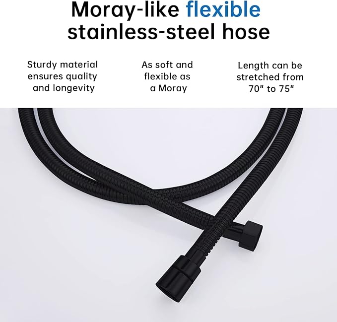 - ALL METAL HANDHELD SHOWERHEAD AND LONG HOSE: The hose can be stretched from 70" to 75". it's easy for you to shower yourself, bath your babies, your pets or cleaning the toilet. A good quality hose refuses winding