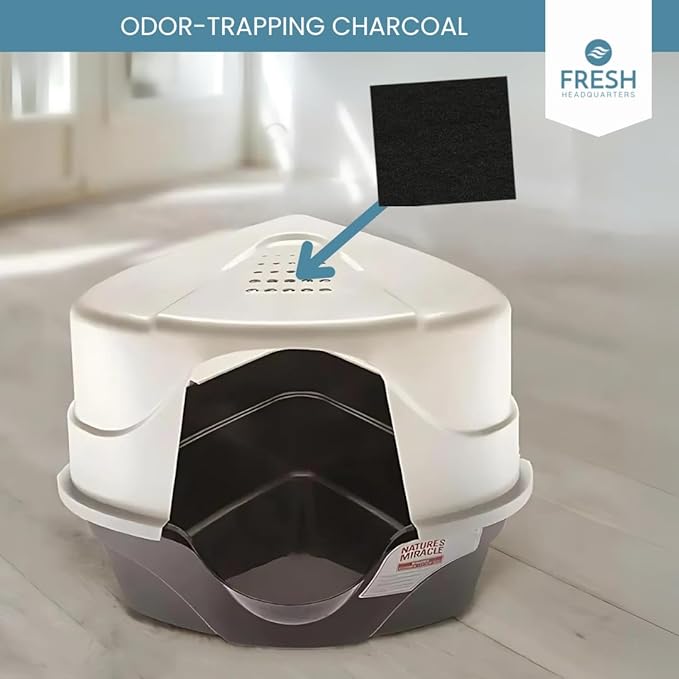 - CONTINUOUS CHARCOAL ODOR ABSORBER: Unlike temporary solutions that dissipate within minutes, this cat litter carbon filter work 24/7 to maintain consistent odor control without requiring daily reapplication or maintenance. The passive litter box air filtration system operates silently and automatically, requiring no electricity or batteries once installed. This charcoal replacement filter pads has powerful odor control that lets you place the cat litter box anywhere and anytime.