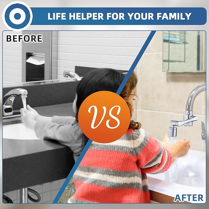 - EASY INSTALLATION IN 3 MINUTES - 1080 swivel robotic arm + 360°swivel extension faucet aerator compatible with most faucets with removable aerator. Package included detailed instruction installation manual to help you assemble the practical home improvement tool less than 3 minutes. Simply remove your original faucet aerator, then screw the faucet extender on. Start enjoying the little happiness in life