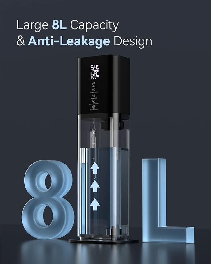 - 【8L Large Capacity & Powerful Mist!】 Are you looking for a high-quality humidifier for your bedroom or large room? Look no further than our 2.11Gal 8L Humidifier with Timer! This powerful device features a 360° nozzle and 3-speed settings, allowing you to easily control the humidity in your space.It creates a comforting indoor condensation level that soothes your skin and helps you breathe more easily, without turning the room into a swampy fog or leaving little drops of moisture on the walls.