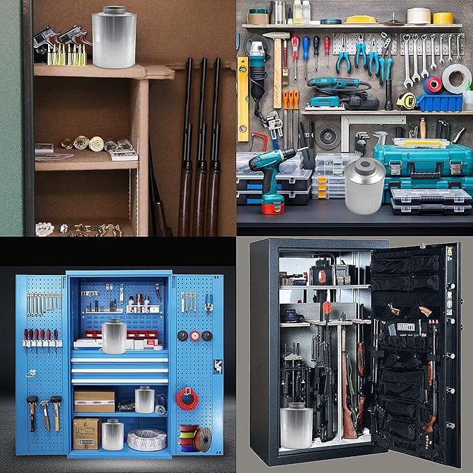 - 【Versatile】: Silica gel container can Protects up to 675 cubic ft of enclosed storage space., including safes, ammo cans, toolboxes, 3D printer filament storage boxes, weapon cases, and closets. It provides an effective solution for moisture prevention in various items such as guns, important papers, legal documents, collectibles, books, jewelry, photo albums, shoes, camera lenses, valuable camera equipment, toys, leather clothing, ammunition, and photographic gear.