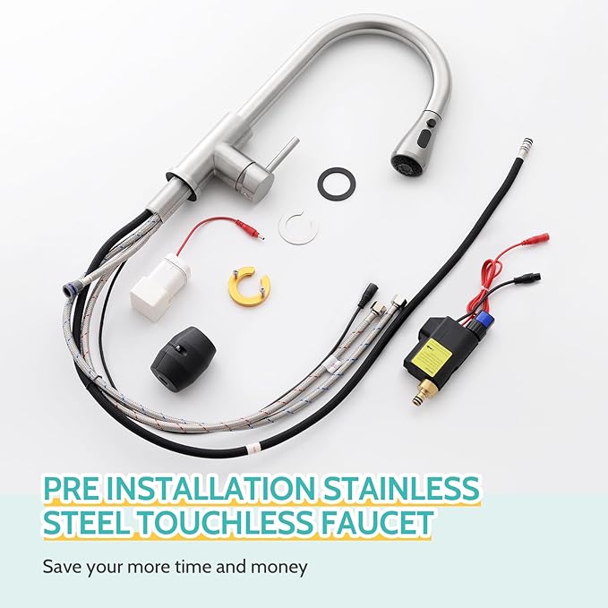 - 【Pre Installation Faucet-Save Your More Money】We have connected the water pipe and the touchless faucet body in advance. Installation takes less than 15 minutes. No plumber required, easy installation, and you'll save over $80.(The battery is not included in the packaging list)