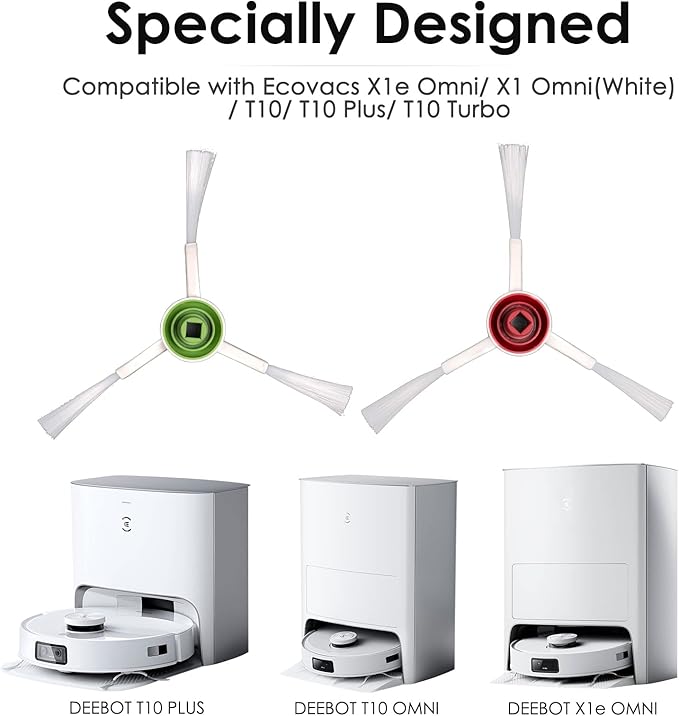 - 【Specially Designed】 The side brushes are specially developed for robot vacuum ECOVACS DEEBOT T20 Omni / T20e Omni/ X1 Omni/ X1 Omni(White)/ T10/ T10 Plus/ T10 Turbo/ T10 Omni. Please make sure your model is correct before the order.