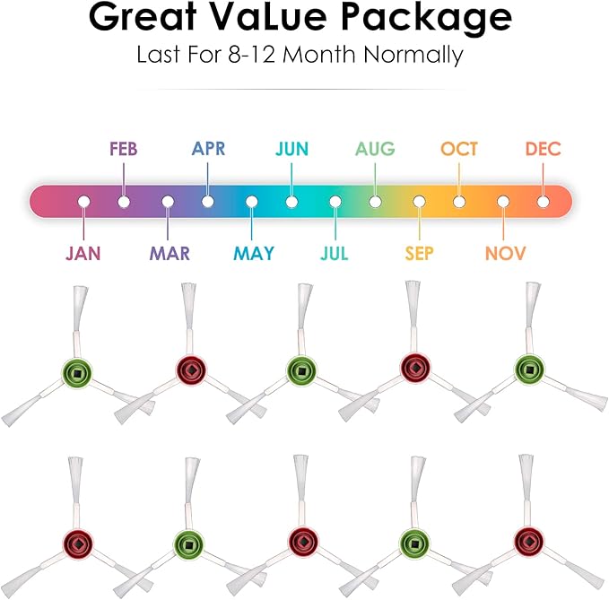 - 【Premium Materials】With excellent workmanship, the side brushes are made of environmentally friendly materials and will not have any pollution to the environment. The bristles on our side brushes are made of premium nylon, which are more durable and clean better than the brushes of other brands.