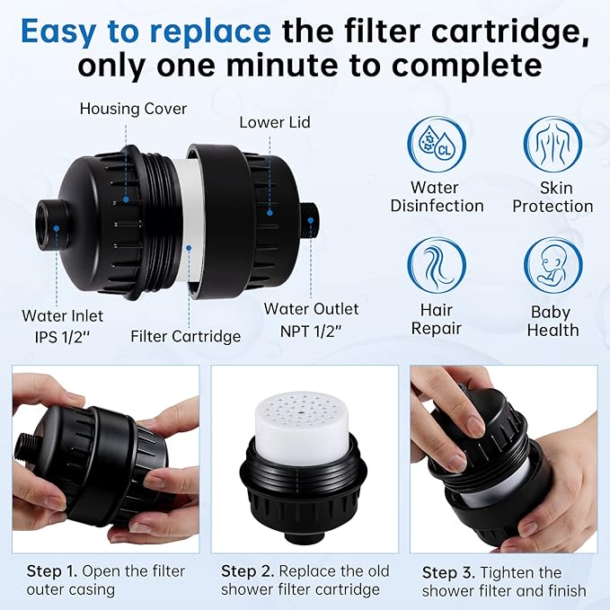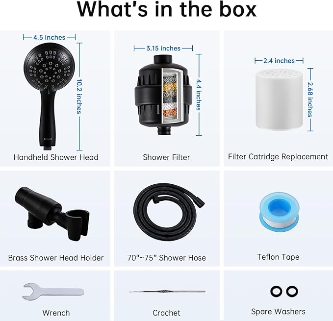 - ►AN EFFECTIVE FILTER GUARANTEES REFRESHING YOUR LIFE: This filter can reduce heavy metals, chlorine, and other harmful impurities. Take better care of your skin and hair health. A healthy shower for you and your family.