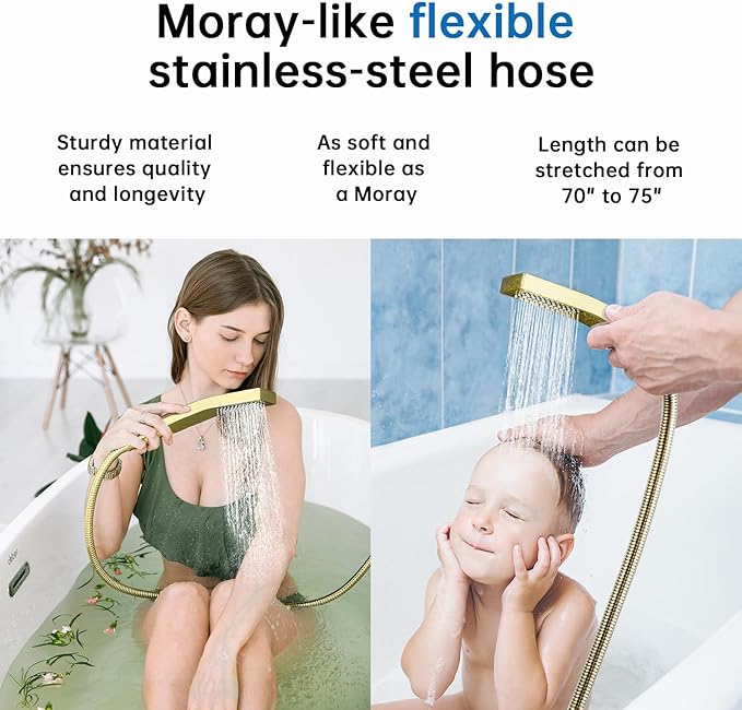 - ALL METAL HANDHELD SHOWERHEAD AND LONG HOSE: The hose can be stretched from 70" to 75". it's easy for you to shower yourself, bath your babies, your pets or cleaning the toilet. A good quality hose refuses winding