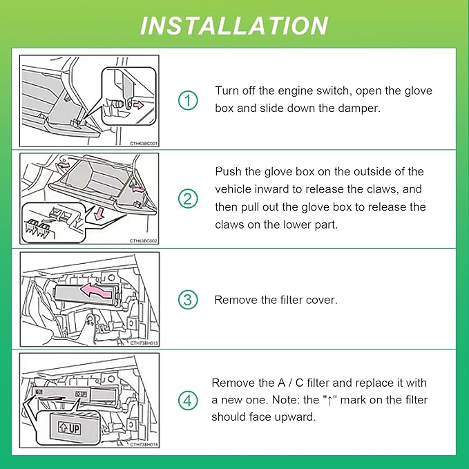 - 【REPLACEMENT PART NUMBER】Cabin Air Filter Replace 87139-02020, 87139-YZZ16, 87139-06080, 87139-47010-83, 87139-07010, 87139-07020, 87139-08030, 87139-0D010, 87139-0D070, 87139-30040, 87139-30070, 87139-02090, 87139-YZZ20,87139-47010, 87139-48020, 87139-50060, 87139-50100, 87139-52020, 87139-52040, 87139-60020, 87139-76010, 87139-YZZ08, 87139-YZZ10.Please confirm whether your model is suitable before purchasing,thank you!