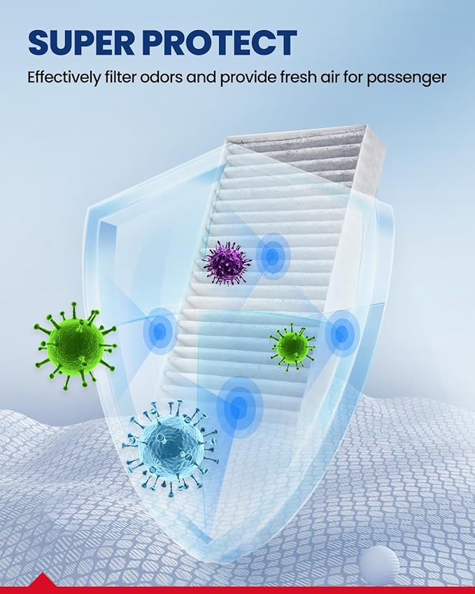 - 99.9% Filtration Efficiency: KAX cabin air filters are comprised of three layers that provide up to 99.9% filtration, that effectively captures small particles of 0.1-0.3 microns like dust, soot, pollen and other air pollutants,keep it from entering the vehicle, providing you with a comfortable interior environment