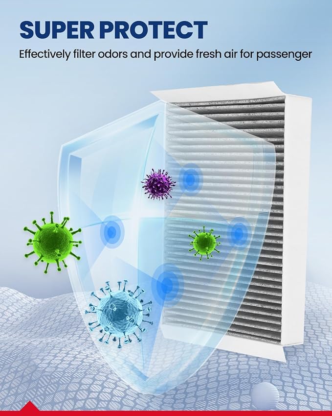 - Multilayer Filtration: KAX cabin filter uses high quality activated carbon to effectively absorb harmful gases and odours in the vehicle, three layers that provide up to 98.8% filtration,providing clean and fresh breezy air for the driver and passengers.