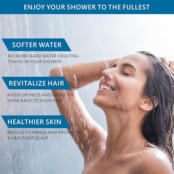 - 15-STAGE FILTRATION: Includes 3 of the most powerful water filtration media (KDF, calcium sulfite and activated carbon) which is known to remove chlorine and harmful chemicals, minerals and impurities from your shower water. Effective all-day protection for your skin and hair.