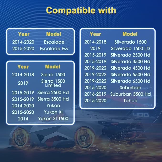 - [Compatible with Select Model] Replacement for CF11809, Silverado 1500, 1500 LD, 2500 HD, 3500HD, Sierra 1500, 2500HD, 3500HD, Suburban, Tahoe, Yukon, Escalade