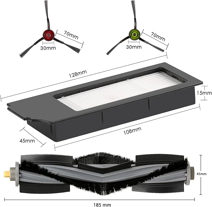 - Material : 1 Roller Brush, 3 HEPA Filters, 6 Side Brushes