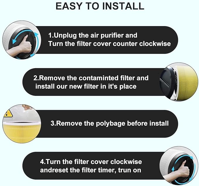 - Tool-Free Replacement:Quick-release design for effortless installation (no tools needed). Replace every 4-8 months for peak air quality.