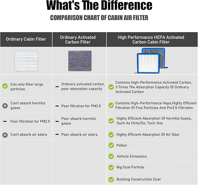 - Material : Carbon Fiber CF10285 Cabin Air Filter with activated carbon particle
