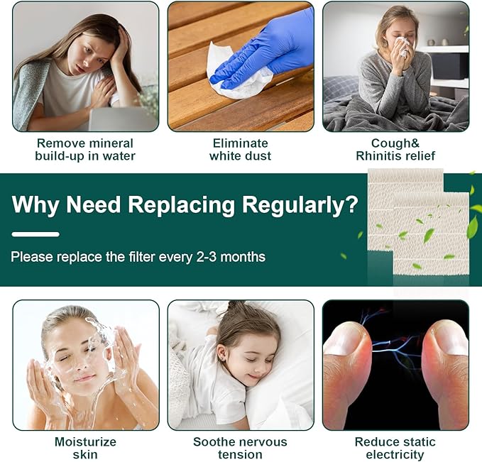 - Ideal humidity levels - Our 1043 humidifier wick filters will help your humidifier quickly restore indoor humidity and resolve a range of symptoms caused by low humidity: ①Prevent or relieve dry skin, help reduce nasal swelling and make it easier for you to breathe; ②Help reduce static electricity and avoid annoying electric shocks when walking through carpets; ③Help keep the things you own in good condition to avoid squeaking your wood floors