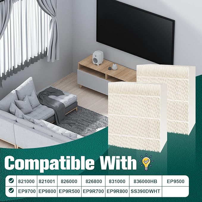 - Compatible Models - Our humidifier filter compatible with Essick Air AIRCARE Humidifiers EP9500, EP9700, EP9800, EP9R500, EP9R700, EP9R800, 821000, 821001, 826000, 826800, 831000, 836000HB, SS390DWHT; Compatible with Bemis Space Saver 800 8000 Evaporative series air humidifier. Compared to Part # 1043 humidifier filter