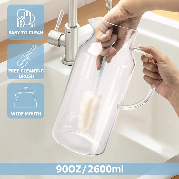 Yirilan Glass Pitcher, 2.6 Liter Water Pitcher with Lid, Large Juice Pitchers for Drinks, Glass Water Carafe, Glass Tea Jug, Beverage Pitchers