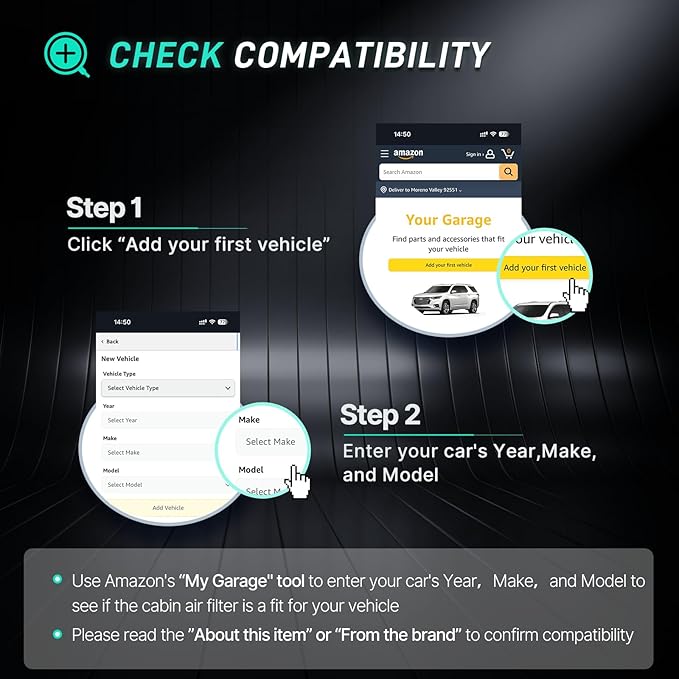 - Easy Installation Cabin Filter: The no tools required and hassle-free cabin air filter can be easily installed within 5-8 minutes, boasting a perfect fit effortlessly, saving your money and time compared to a repair shop. Please check if this filter matches your car in the upper left corner before purchasing to ensure the part will fit your vehicle