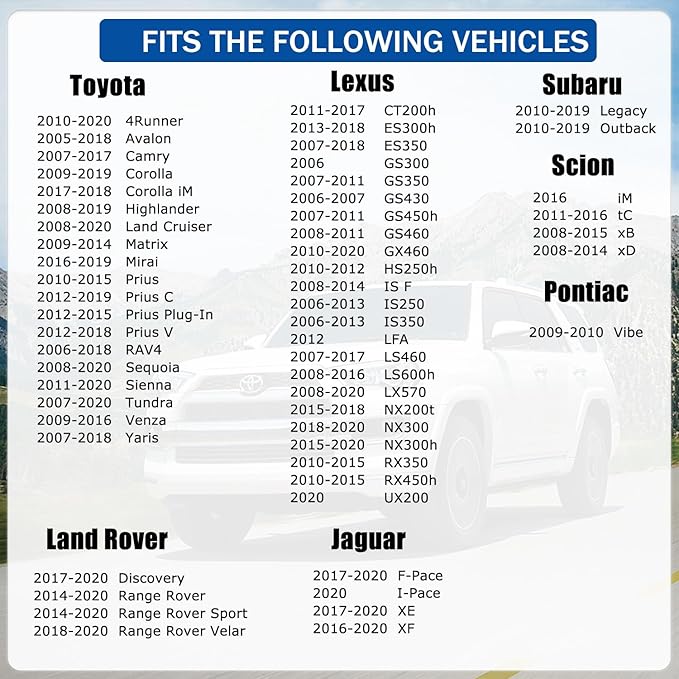 - Compatible with | 2005-2020 Toyota Camry 4Runner Highlander RAV4 Tundra Corolla & Lexus & Scion| more details in the Product Description below.