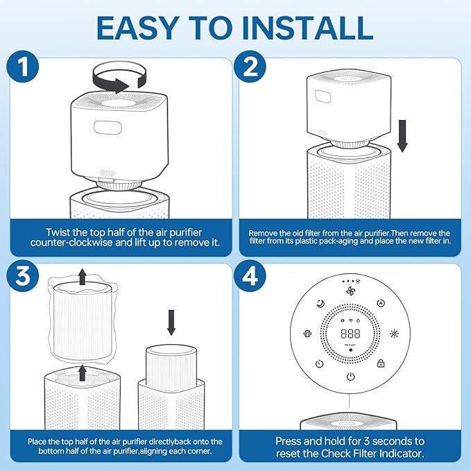 - 3-In-1 Efficient Filtration: High Efficiency Activated Carbon Filter And Pre-Filter, It Can Catch Pet Hair Odor, Absorb Cooking And Smoke Odor, And Even Reduce 99.99% Of Airborne Particles (As Small As 0.03 Microns In Diameter), Effectively Improving Indoor Air Quality.
