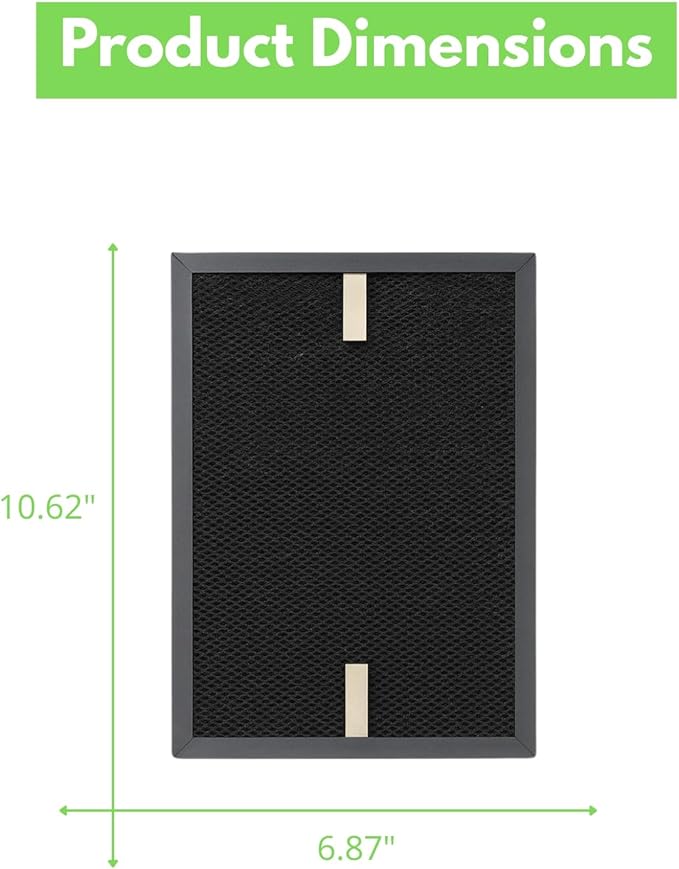 - 1 Filter included. Filter size dimension: 10.62" x 6.87" x 0.4" inches. Suggested to replace every 3 months to achieve the best result.