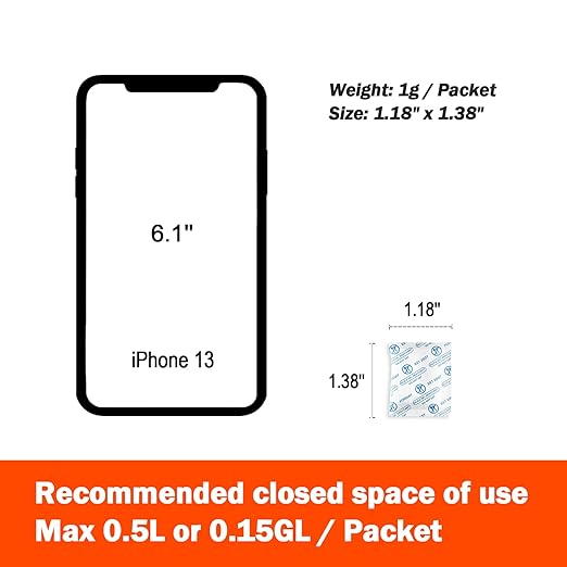 - [Packet Specification] Dimension of Each Packet: 1.2inch x 1.4inch; 1 gram desiccant each packet can cover approximately 0.5L or 0.15Gl volume containers; We recommend placing more packets than recommended for extra protection.
