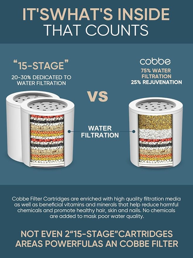 Cobbe Shower Filter for Hard Water Shower Head Filter - with 2 Replaceable Filter Cartridges - High Output Shower Water Filter for Removing Chlorine and Harmful Substance, Chrome