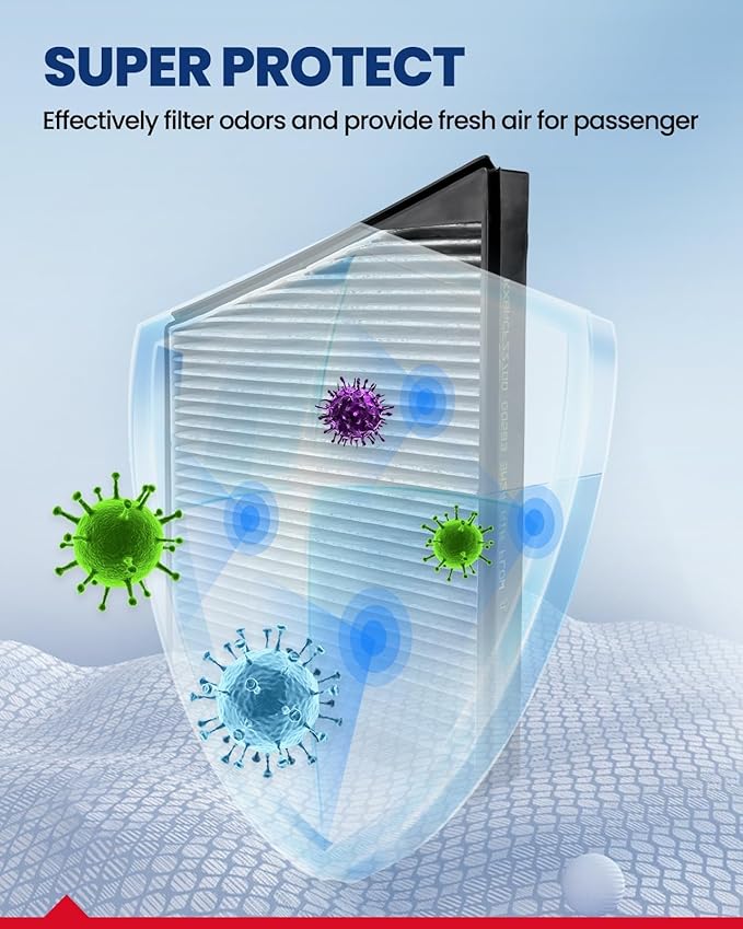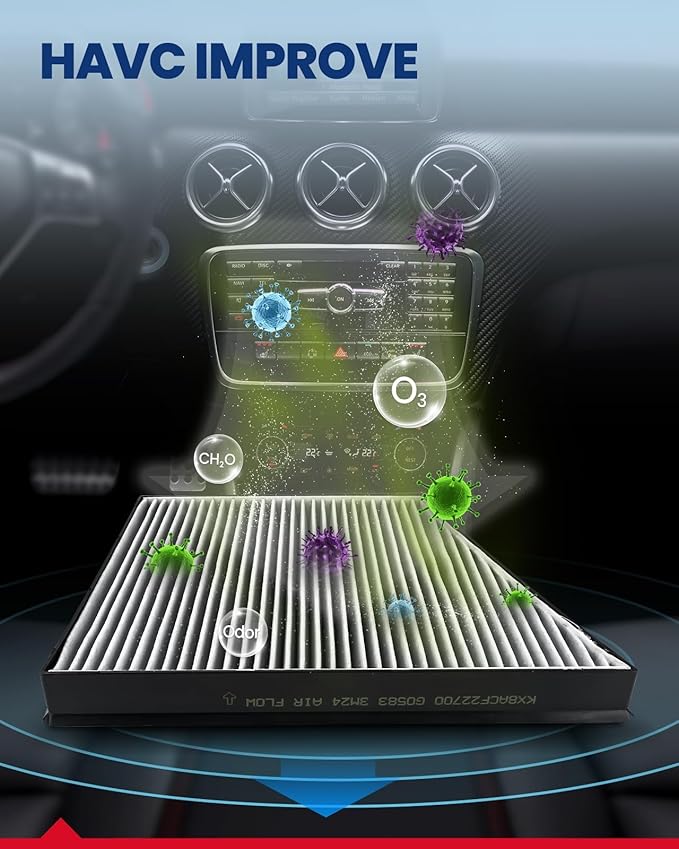 - 99.9% Filtration Efficiency: KAX cabin air filters are comprised of 5 layers that provide up to 99.9% filtration, that effectively captures small particles of 0.1-0.3 microns like dust, soot, pollen and other air pollutants,keep it from entering the vehicle, providing you with a comfortable interior environment