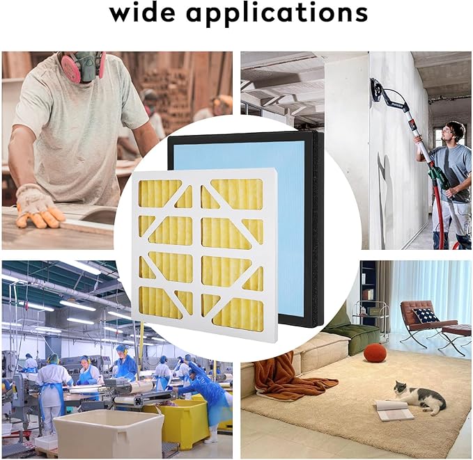 - 【Suitable for any Occasion】Upgraded and high efficiently HEPA 550 filter replacement set strong enough for home repairs and construction sites, wall painting, Quickly purify dust, fumes, and harmful particulates. Also it suitable for homes with pets, cooking, and smokers. Upgraded MERV-11 filter, H13 grade true HEPA filter, made by 3-stage filtration system, upgraded MERV-11 pre-filter and H13 Hepa replacement filter for AlorAir CleanShield HEPA 550 Air Scrubber is high quality & durable filter