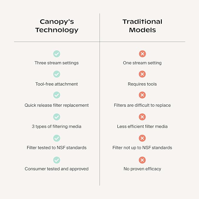 - THE CANOPY BRAND PROMISE - We are driven by the quality of our products and our commitment to creating reimagined household devices that effortlessly optimize the home for beauty and wellness. Every Showerhead comes with our signature aromas and Felt Diffuser - an experience only found with Canopy. Not only will our showerhead help you improve the health of your scalp, hair and skin; it will help you unwind, relax and destress after a long day. Take the leap and upgrade your shower routine.