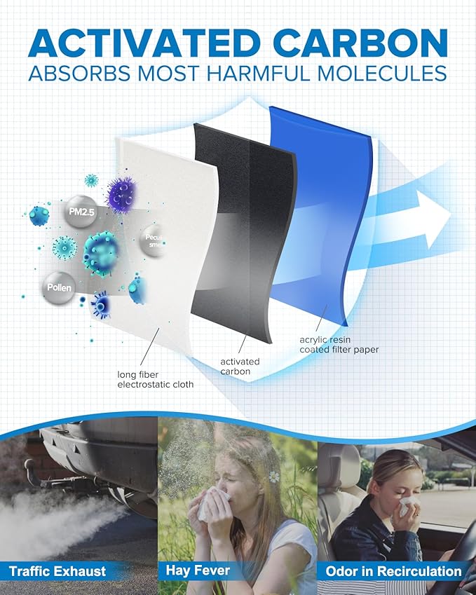 - 5 Min Installation & Money Saving: Exact size match for the OEM cabin filter. Easy to install within 5-8 minutes without any modification, saving time and money compared to having the dealership. Installation instructions are included in the manual.