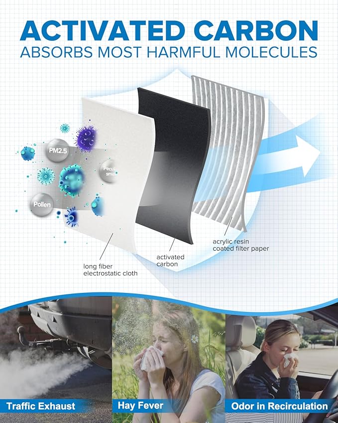 - 5 Min Installation & Money Saving: Exact size match for the OEM cabin filter. Easy to install within 5-8 minutes without any modification, saving time and money compared to having the dealership. Installation instructions are included in the manual.