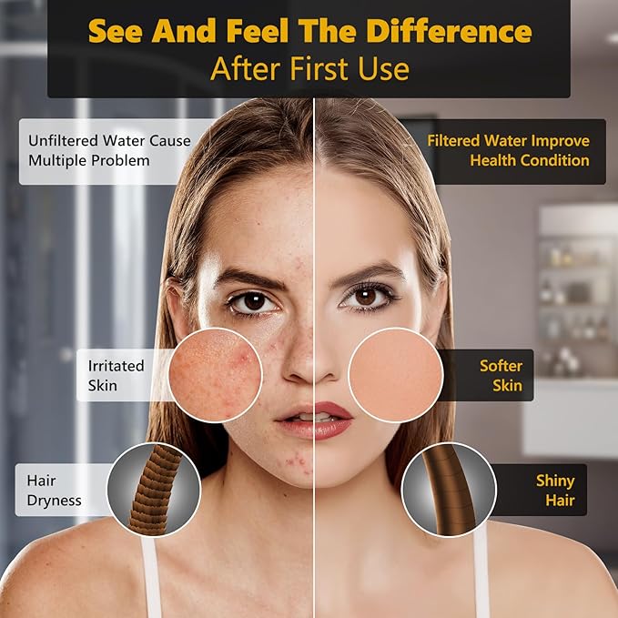 - Filtered Shower Head For Hard Water: Do you suffer from dry skin, weak hair? DAKINGS' 16-stage filtered shower head can reduce residual chlorine, sediment, metals, impurities and more in tap water, helps you with dry skin, rough hair. Improve water quality and make bathing healthier.