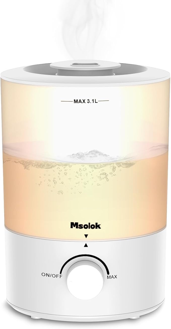 Humidifiers for Bedroom, Cool Mist Top Fill Diffuser with 25Watt for Home Large Room, 360° Nozzle, Rapid Ultrasonic Humidification for Baby Nursery and Plant(3.1L)