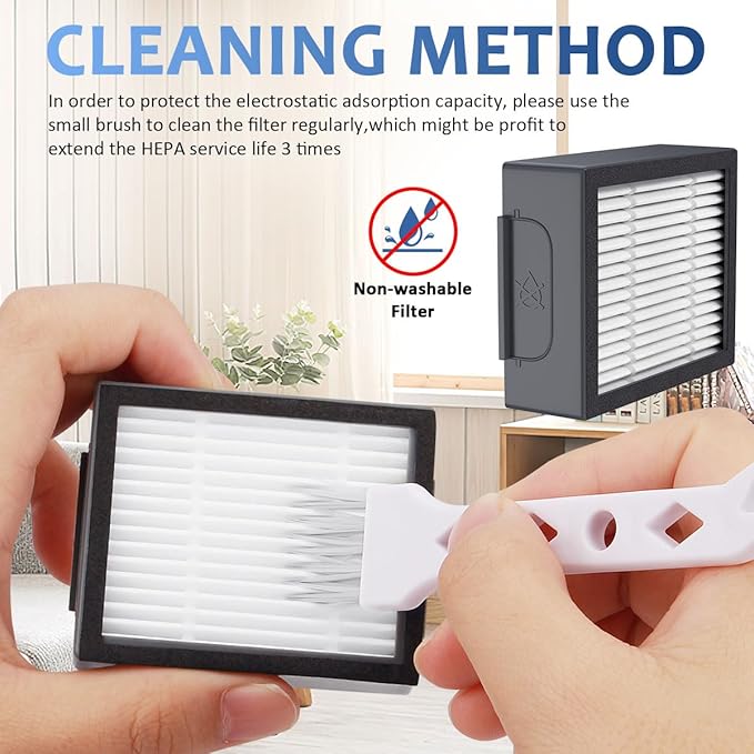 - 【Cleaning Method & Suggestion】In order to protect the electrostatic adsorption capacity,please use the small cleaning brush to clean the i3 i7 robot vacuums filter replacement slightly and regularly,which might be profit to extend the HEPA service life 3 times.Please know that this i3 robot vacuums filter replacement is non-washable.