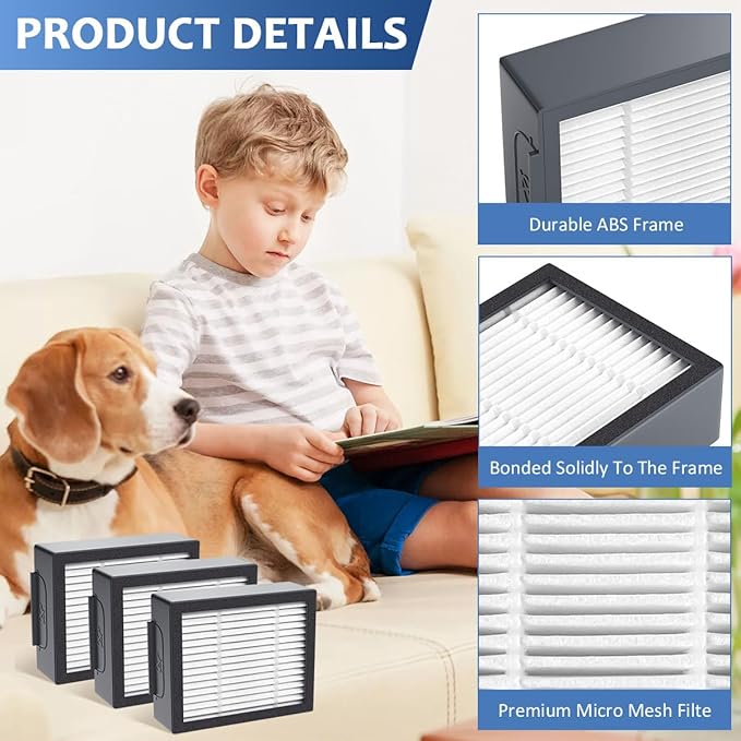 - 【High Efficiency Filter】: Consisting of compound PP and PET filter paper,this i3 robot vacuums filter replacement can efficiently block 99.98% contaminants as small as 0.3 microns in size, which makes great contributions to protecting your families’health.