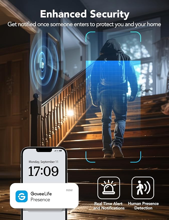 GoveeLife Human Presence Sensor, 2.4 GHz Wi-Fi Required, Smart mmWave Radar & PIR Wired Motion Sensor, Zone Positioning, Multi-Person Detection, Support Alexa & Google Home, for Indoor Home Automation