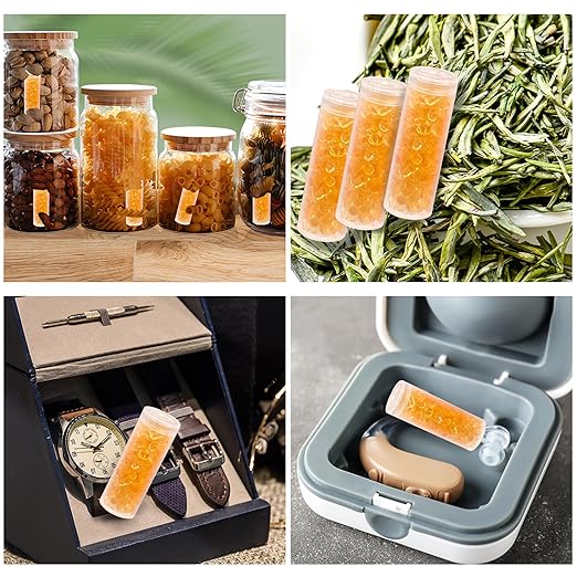- 【Versatile Applications】: WiseCan Silica gel safeguard storage spaces of up to 120 cu in with just 1g of product. It's ideal for various enclosed storage settings: medicine bottles, pill bottles, reagent bottles, safes, ammo cans, ammo boxes, toolboxes, sealed plastic storage boxes for 3D printer filament, weapon cases, closets. Prevents moisture damage in items: medications, vitamins, food, firearms, important documents, collectibles, books, jewelry, photo albums, shoes, and camera lenses.