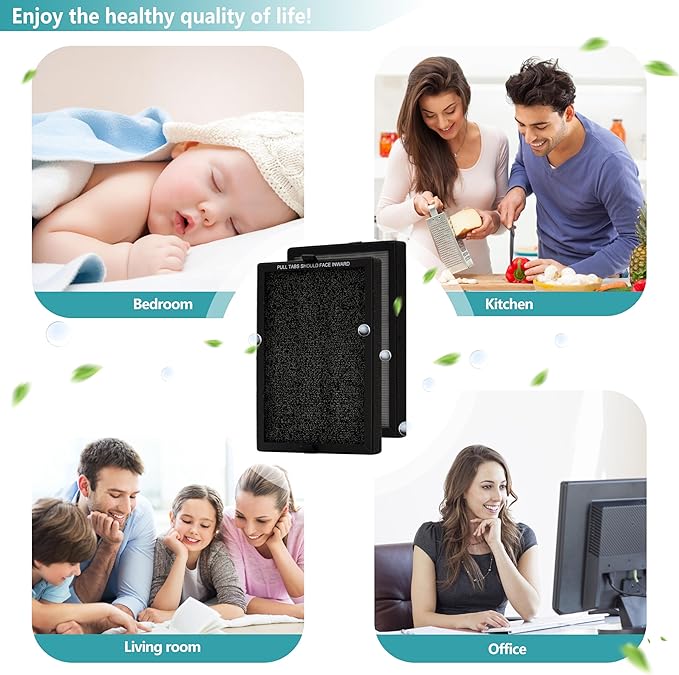 - HIGH EFFICIENCY ACTIVATED CARBON FILTER: Purify gaseous harmful pollutants, such as Chemicals VOCs, tobacco smoke, PM2.5,common household bad smell