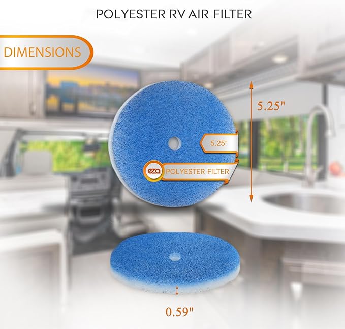 - ✅ This polyester filter has hole in the center and consists of 2-layer of white and blue polyester filter. It may help to extend the life of your RV unit.
