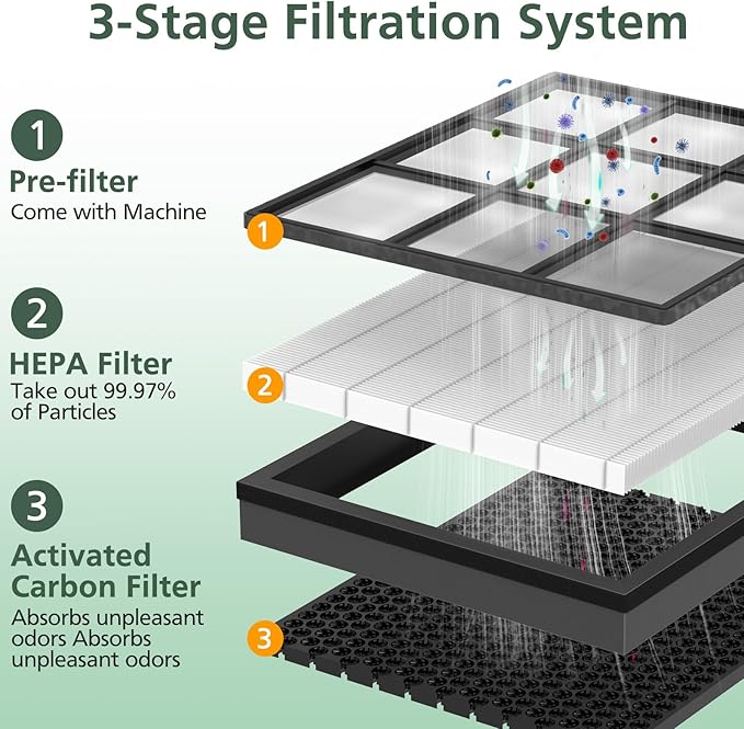 - 3 STAGE FILTRATION - The premium Vital 200S replacement filter for levoit adopts 3-in-1 HEPA Filtration System ( ①Nylon Preliminary Filter (Comes with Machine ) ②HEPA Filter ③Activated Carbon Filter with ARC Formula) to take out 99.97% of substance down to 0.3 microns in size, automatically improving air quality for you