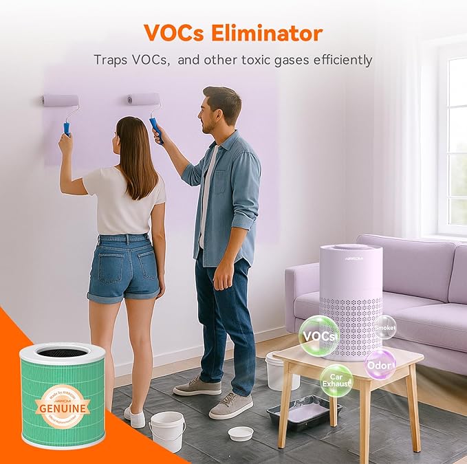 - đăSuper Purificationă: Our Size: 6.9"D x6.9"W x 12.4"H, though this portable air purifier is compact, it can generates more than 673.6gal/2550L clean air /min. AIRROMI A2001 bedroom air purifier utilizes 2023 newly advanced filter system: 40 ppi pre-filter, True HEPA filter, and activated carbon filter. This combination effectively captures 99.97% of particles as small as 0.3 microns, including pet dander, hair,pollen, smoke, Kitchenodors, dust and Mold Smoke . AIRROMI A2001 Air Purifier just want to help you to breath the cleaner air.
