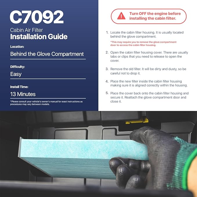 - BNX HEPA Cabin Filters provide your vehicle with noticeably cleaner air within 24 hours, allowing you to breathe cleaner air for you and your loved ones. For optimum performance, BNX Cabin filters should be replaced once a year or every 12K miles. The HEPA Filtration media filters even the tiniest particles at 99.97% filtration efficiency at 0.3 microns.