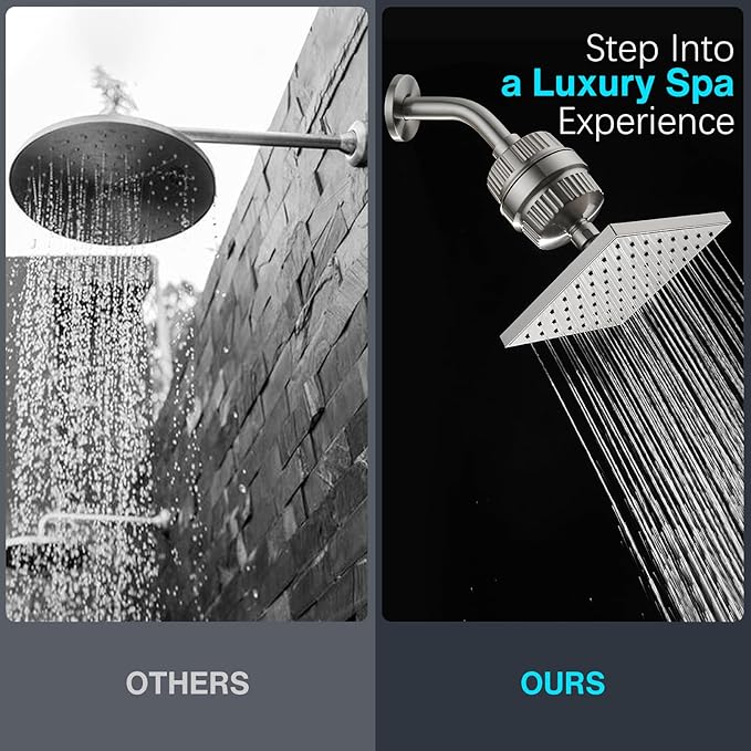 - High Water Pressure, More Efficiency: Our filtered shower head is engineered for maximum efficiency. With its unique internal structure and pressure-boosting technology, it quickly eliminates soap scum and rinses away dry hair in seconds. Enjoy a powerful water pressure that gently rejuvenates your body, leaving you feeling refreshed and revitalized.